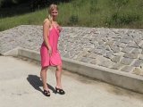 Die kleine geile Sau sah so heiss aus mit ihrem langen sexy Kleid und ihren hohen Schuhen daher hat der Typ angehalten und sie angesprochen. Wie sich herausstellte kam sie gerade von einer geilen Party und war mega fickgeil. Zum Glueck fuer ihn so hatte er leichtes Spiel und fickte sie noch an Ort und Stelle geil durch. Schnell das Kleidchen ausgezogen und schoen tief rein mit dem Schwanz in ihr suesses Foetzchen. Die Kleine war so notgeil das sie nicht mal ein Hoeschen anhatte. Er konnte mit ihr anstellen was er wollte und genau das tat er auch